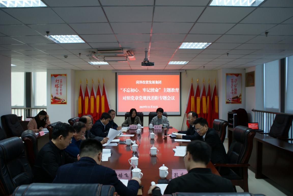 2019年11月11日下午,菏澤投資發(fā)展集團有限公司根據(jù)魯教組發(fā)〔2019〕7號文件精神和市委、市委第十三巡回指導組的工作要求,開展“不忘初心、牢記使命”主題教育領(lǐng)導班子成員對照黨章黨規(guī)找差距專題會議。公司黨委書記、董事長徐文芹同志主持會議。公司領(lǐng)導班子黨員成員參加會議。市委“不忘初心、牢記使命”主題教育第十三巡回指導組長周福舉同志以及成員張全同志到會指導。