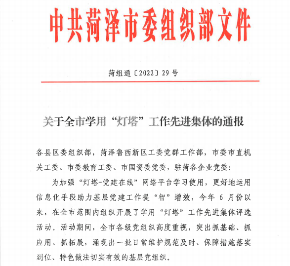 菏澤投資集團2家黨組織榮獲“全市學(xué)用‘燈塔’工作先進集體”稱號