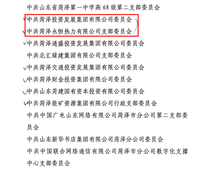 日前,菏澤市委組織部發(fā)布了《關(guān)于全市學(xué)用“燈塔”工作先進集體的通報》,中共菏澤投資發(fā)展集團有限公司委員會、中共菏澤永恒熱力有限公司支部委員會均榮獲“菏澤市學(xué)用‘燈塔’工作先進集體”稱號。