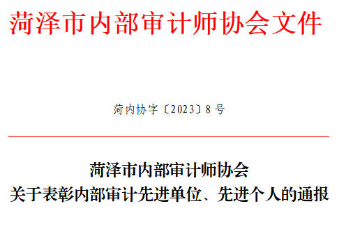 2023年,菏澤投資集團按照內(nèi)部審計基本準則,緊緊圍繞中心工作,以維護財經(jīng)秩序、規(guī)范經(jīng)營行為、提高經(jīng)濟效益為重點,較好的完成了各項內(nèi)部審計工作任務。獲得此項榮譽是對集團內(nèi)部審計工作的充分肯定,進一步增強了內(nèi)審人員的榮譽感和進取意識。