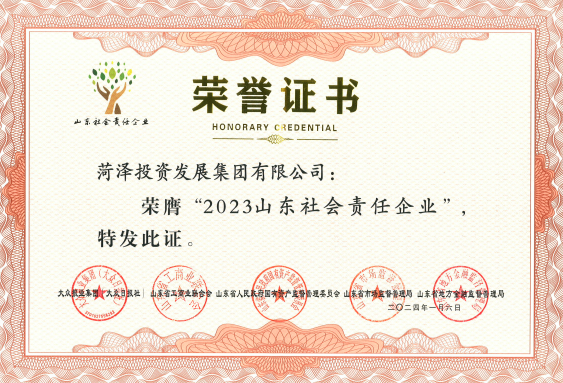 【彰顯新時代責(zé)任國企新作為】菏澤投資集團(tuán)蟬聯(lián)“2023山東社會責(zé)任企業(yè)”