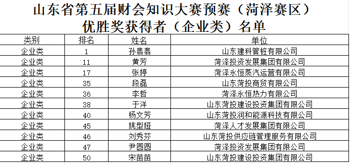 菏澤投資集團(tuán)財(cái)務(wù)人員入圍“山東省第五屆財(cái)會(huì)知識(shí)大賽 預(yù)賽(菏澤賽區(qū))”企業(yè)類(lèi)半決賽