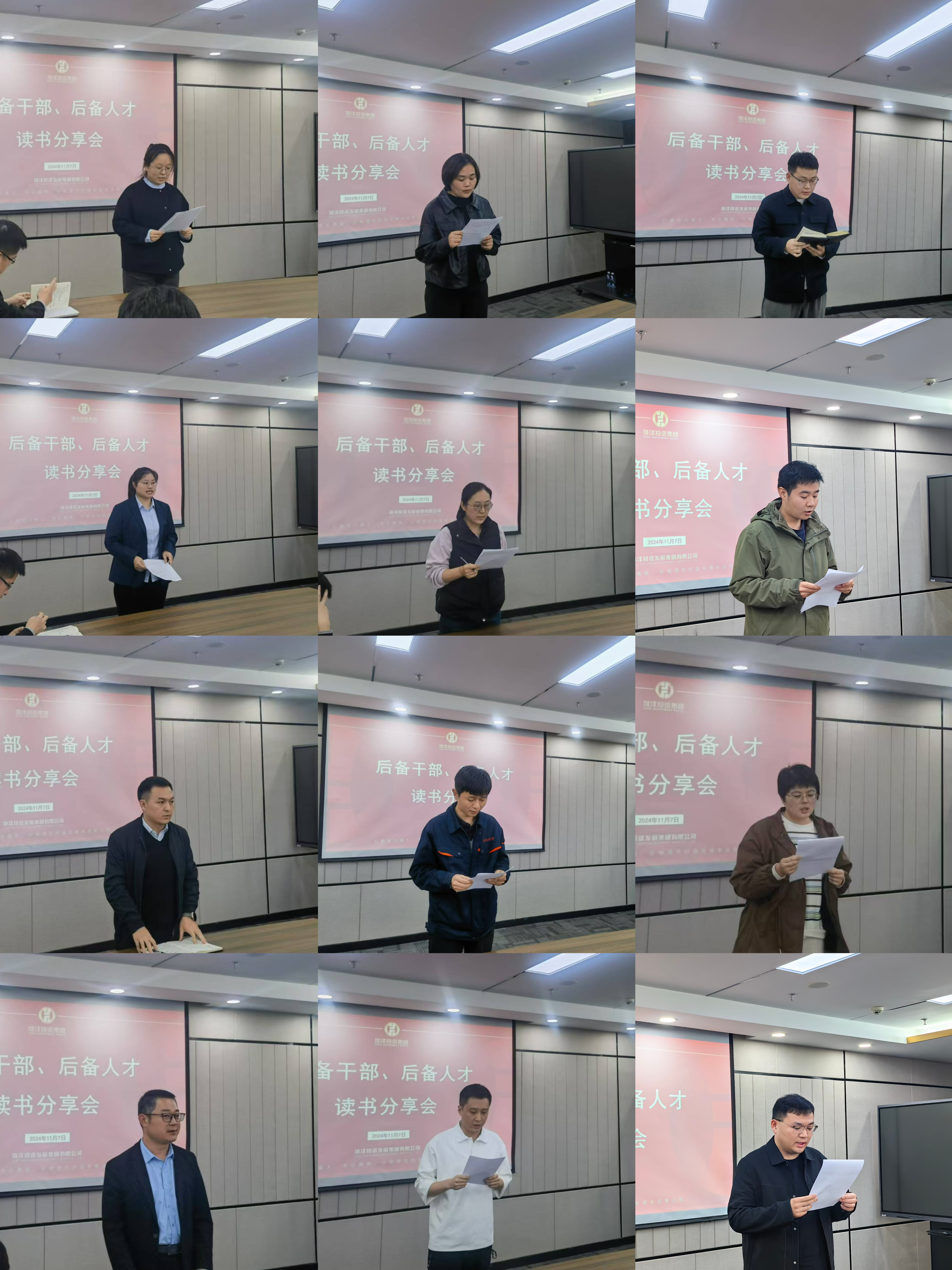 丁萬國對此次讀書分享會的精心籌備與精彩分享給予了充分肯定,并對集團后備干部、后備人才提出了殷切期望,他指出,一是要注重學與悟,堅持學思用貫通、知信行統(tǒng)一,珍惜集團提供給大家的線上線下學習機會,悟出與實際工作相結合的經(jīng)驗方法,練就寬肩膀、真本事,增長實干才能;二是要注重全與專,通過學習專業(yè)知識,不斷拓寬知識面,不但要成為專業(yè)領域的行家里手,還要成為全面的復合型管理人才。