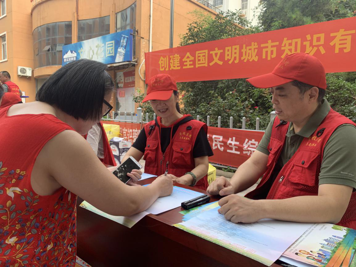 為進(jìn)一步提高創(chuàng)建全國(guó)文明城市群眾知曉率、參與率、滿意率,營(yíng)造濃厚的創(chuàng)城氛圍,8月22日上午,菏澤投資發(fā)展集團(tuán)有限公司黨委副書(shū)記、總經(jīng)理、創(chuàng)建全國(guó)文明城市、國(guó)家衛(wèi)生城市工作領(lǐng)導(dǎo)小組組長(zhǎng)丁萬(wàn)國(guó),黨委副書(shū)記、創(chuàng)建全國(guó)文明城市、國(guó)家衛(wèi)生城市工作領(lǐng)導(dǎo)小組副組長(zhǎng)郭菏玉帶領(lǐng)市管干部以普通黨員志愿者身份走進(jìn)公司包聯(lián)的吳堤口社區(qū)下轄小區(qū)文心花園開(kāi)展“創(chuàng)建全國(guó)文明城市知識(shí)有獎(jiǎng)競(jìng)答活動(dòng)”,為助力我市創(chuàng)建全國(guó)文明城市再添光彩。