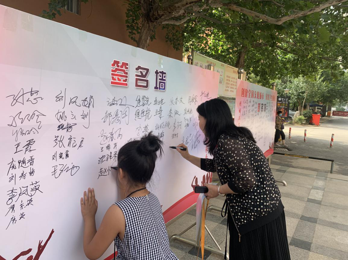 活動(dòng)現(xiàn)場(chǎng)設(shè)置“創(chuàng)建全國(guó)文明城市和國(guó)家衛(wèi)生城市”主題的簽名墻。居民紛紛在簽名墻上寫(xiě)下姓名,鄭重承諾為爭(zhēng)做文明市民做表率,以實(shí)際行動(dòng)傳遞心聲,助力創(chuàng)城攻堅(jiān)。