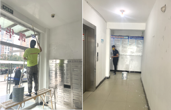 為做好社區(qū)樓道亮化凈化,逐一對(duì)每個(gè)單元樓道進(jìn)行打掃清理。針對(duì)小區(qū)單元樓一樓墻面有明顯涂劃痕跡和大面積脫落的情況,粉刷匠先拿刷子認(rèn)真清理掉墻面上的灰塵,再用滾筒蘸著涂料粉刷有劃痕和脫落的墻面,并多次粉刷印有小廣告的地方。