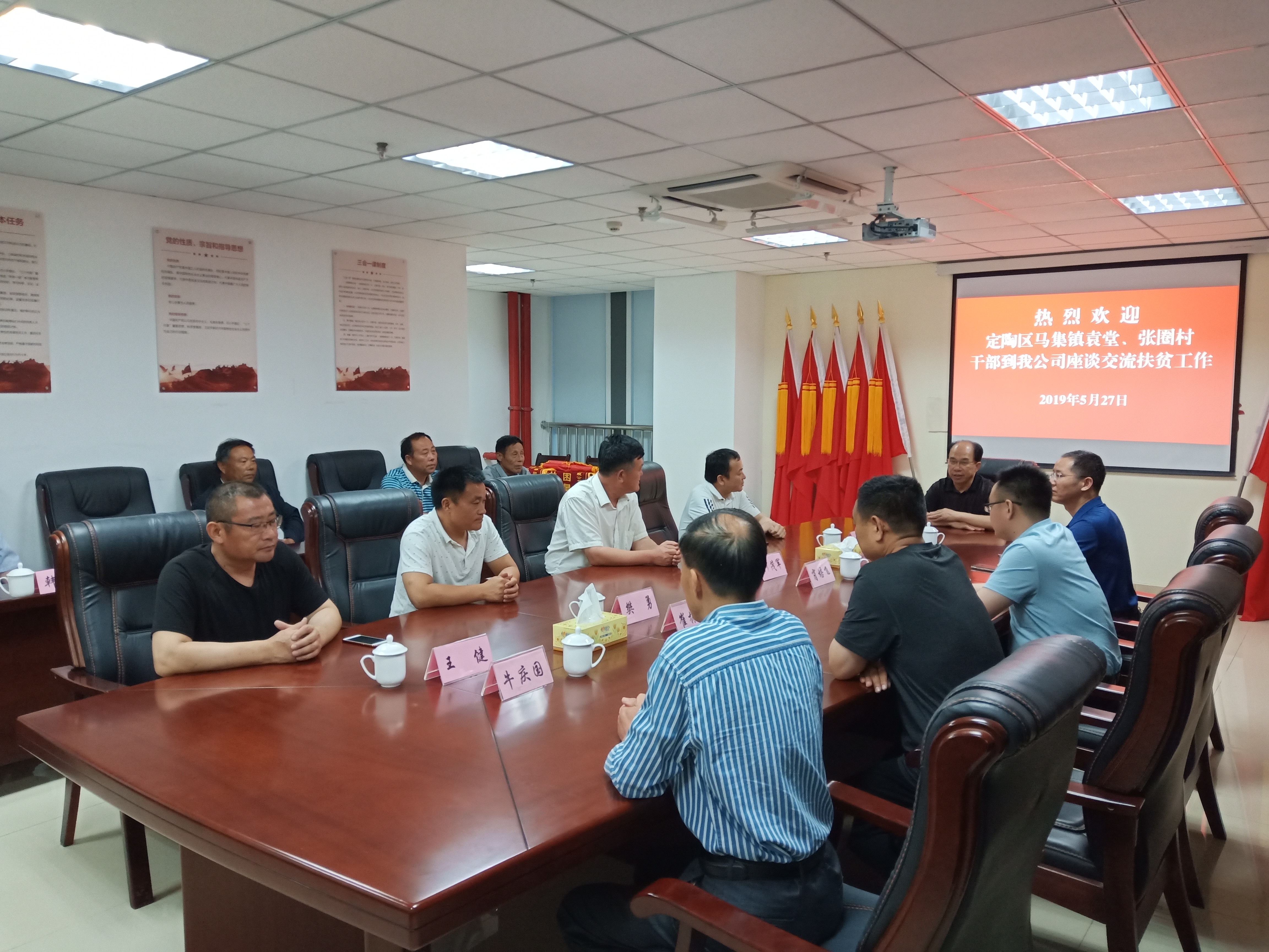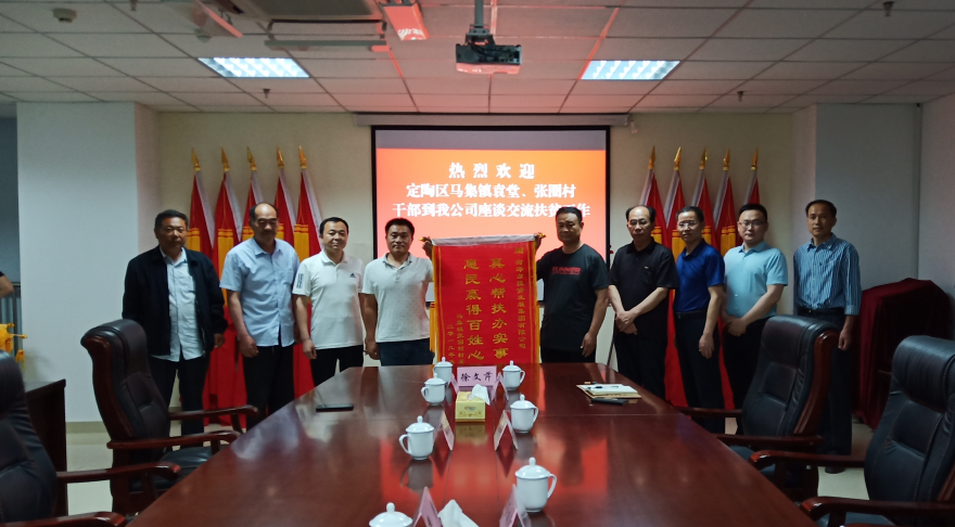5月27日下午,馬集鎮(zhèn)中心管區(qū)書記丁友存、袁堂社區(qū)黨支部書記何茂軍、張圈村黨支部書記樊勇一行8人,到我公司座談交流扶貧工作,并向公司贈送了“奉獻愛心,傳遞真情”、“扶貧助困顯真情,真心幫扶暖人心”、“大愛無疆送溫暖,捐資救助排憂難”、“真心幫扶辦實事,惠民贏得百姓心”的四面錦旗,感謝菏投集團在定陶區(qū)馬集鎮(zhèn)扶貧工作中所作的貢獻。公司黨委書記、董事長徐文芹,黨委委員、副總經(jīng)理祝傳隨、肖培飛,第一書記崔振河和牛慶國參加會議。