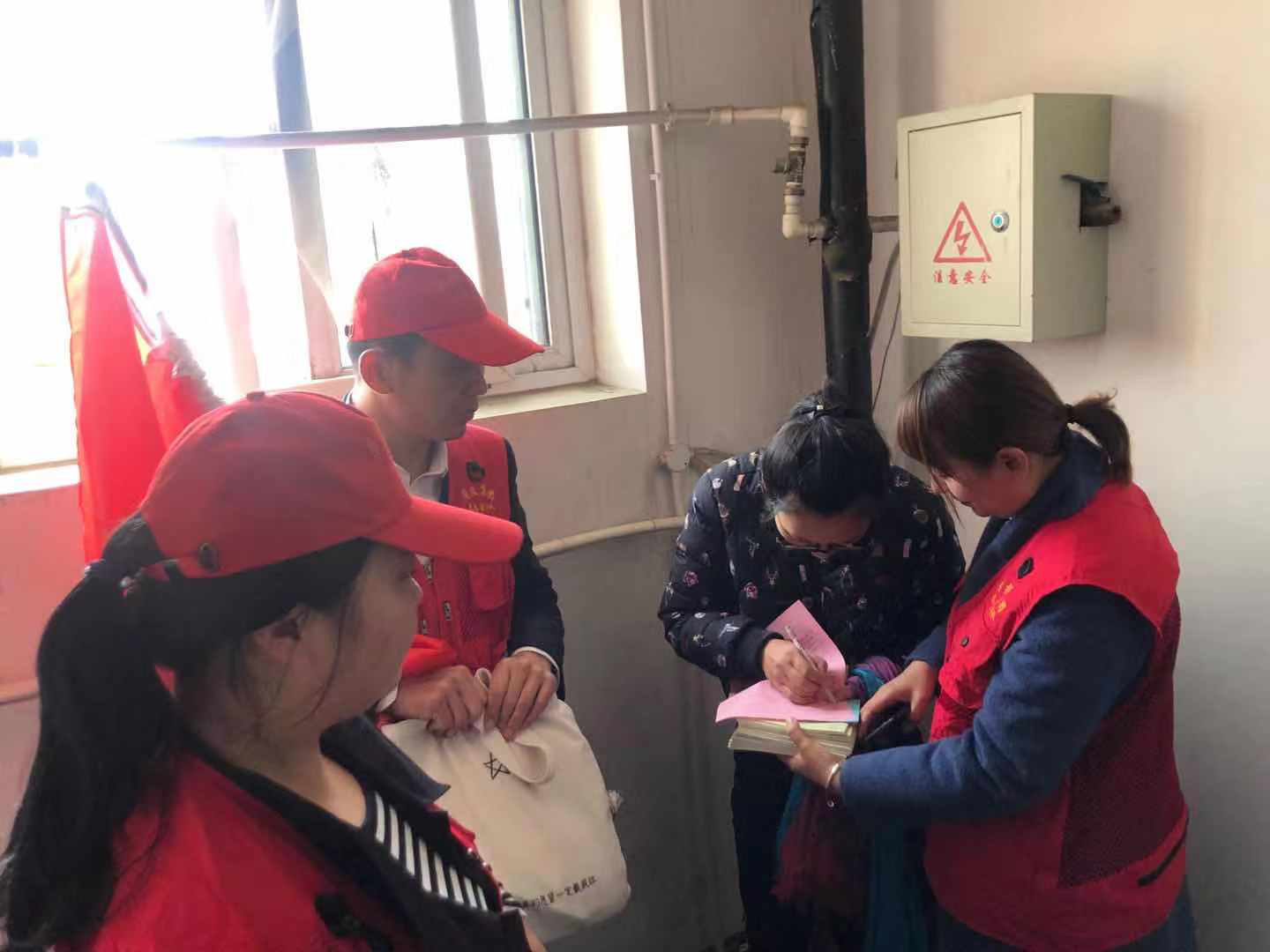 菏投集團(tuán)志愿者們?nèi)霊舭l(fā)放調(diào)查問卷和“雙城同創(chuàng)”宣傳資料