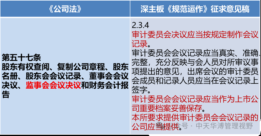 作為董事會(huì)下屬專業(yè)委員會(huì),審計(jì)委員會(huì)的會(huì)議記錄并不是上市公司資料公開的重要文件,但是在新公司法頒布后,由于承接了監(jiān)事會(huì)的全部職能,因此審計(jì)委員會(huì)的會(huì)議記錄也成為重要的法律文件,得以隨時(shí)供股東查閱。這一點(diǎn)在深主板《規(guī)范運(yùn)作》征求意見稿中有明確規(guī)定。