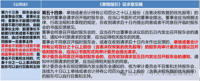 根據(jù)《公司法》第63條約定,股東會(huì)由董事會(huì)主持,董事會(huì)不能履職時(shí),由監(jiān)事會(huì)主持。當(dāng)監(jiān)事會(huì)取消后,這種職能就轉(zhuǎn)移到審計(jì)委員會(huì)身上,這一條在《章程指引》中也有明確的規(guī)定。