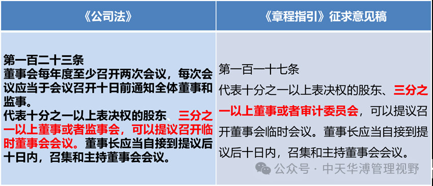 根據(jù)《公司法》規(guī)定,企業(yè)監(jiān)事會(huì)有權(quán)根據(jù)相關(guān)人員的提議以及自己的判斷,提議召開臨時(shí)董事會(huì),根據(jù)新公司法的征求意見稿,在取消監(jiān)事會(huì)之后,該職權(quán)就將轉(zhuǎn)移到審計(jì)委員會(huì)。這一規(guī)定在《上市公司章程指引》中得到了明確的規(guī)定。