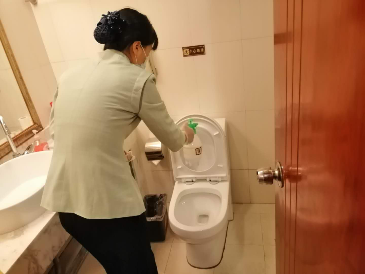客房衛(wèi)生間每日消毒,退房后及時(shí)清潔消毒。