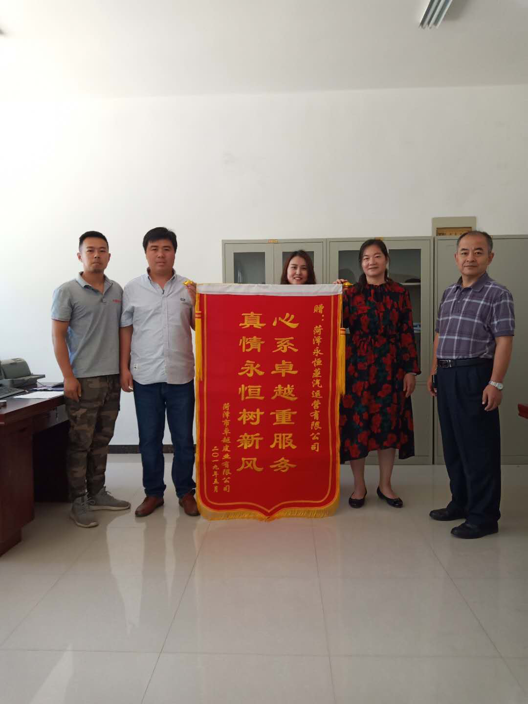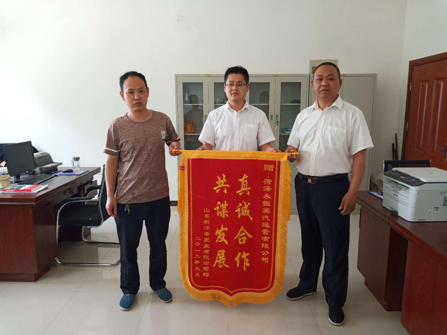 5月28日下午,山東新洋豐肥業(yè)有限公司向菏澤永恒蒸汽運(yùn)營(yíng)有限公司贈(zèng)送一面錦旗,表達(dá)感謝。該公司安質(zhì)環(huán)監(jiān)察部部長(zhǎng)劉章兵表示,雖然是新用戶(hù),但永恒蒸汽高品質(zhì)的服務(wù)讓他們很是感動(dòng),希望能一直真誠(chéng)合作下去,共謀發(fā)展。