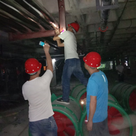 檢查車(chē)庫(kù)供熱管道支架安裝情況