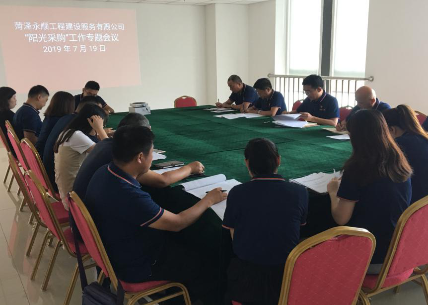 7月19日下午,永順工程公司召開了“陽光采購”專題會議,傳達學習集團公司系列文件精神,安排布置相關工作。會議由公司董事長田濤同志主持,中層副職以上人員及相關同志參加了會議。